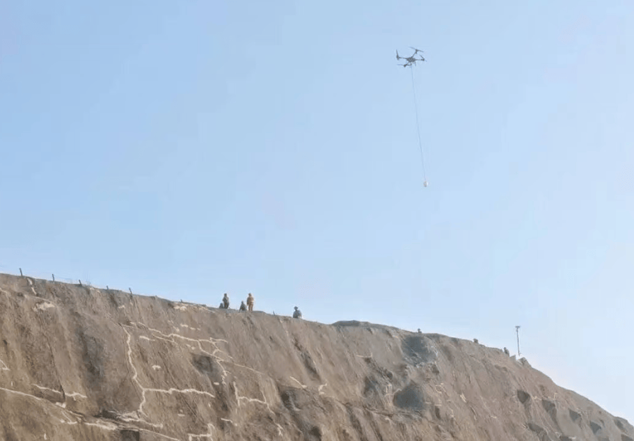 相较于传统作业方式,无人机上料的优势十分突出。在安全层面,实现了“人机分离”作业,从根本上杜绝了人员攀爬高陡边坡的安全隐患;在效率层面,单次物料运输仅需几分钟,且可支持全天候连续作业,大幅缩短施工周期;在成本层面,无需搭建临时施工便道,减少了人力、材料和机械设备的投入;在精准层面,投送精度高,避免物料浪费,适配复杂地形的作业需求。