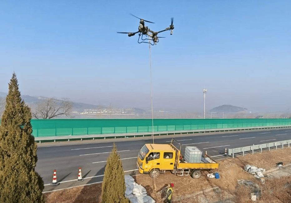 “无人机上料太实用了,既安全效率又高,还能降成本。”近日,在G2京沪高速泰安段边坡治理工程中,施工人员引入无人机上料技术。